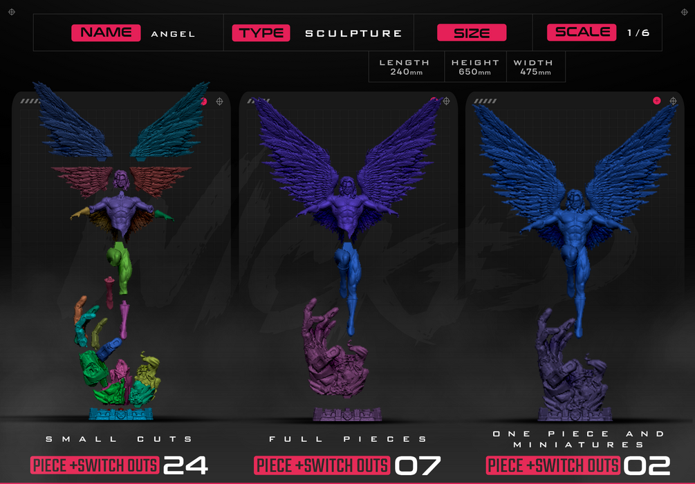 Angel Sculpture Non Supported, Pre Supported and One Piece Files