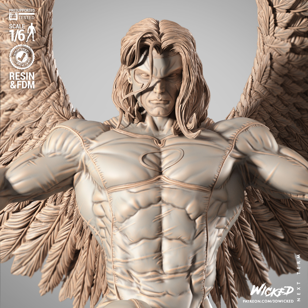 Angel Sculpture based on the Marvel Comics Fan Art Model (1/6 scale approx). Tested and ready for 3D printing.