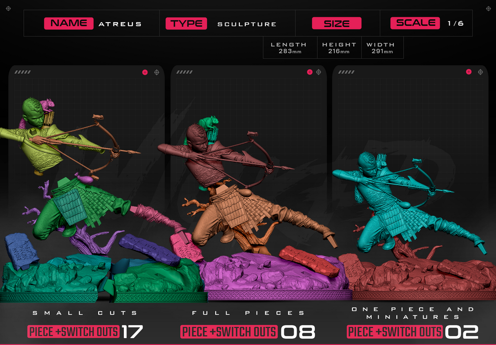 Atreus Sculpture. Non Supported, Pre Supported and One Piece Files