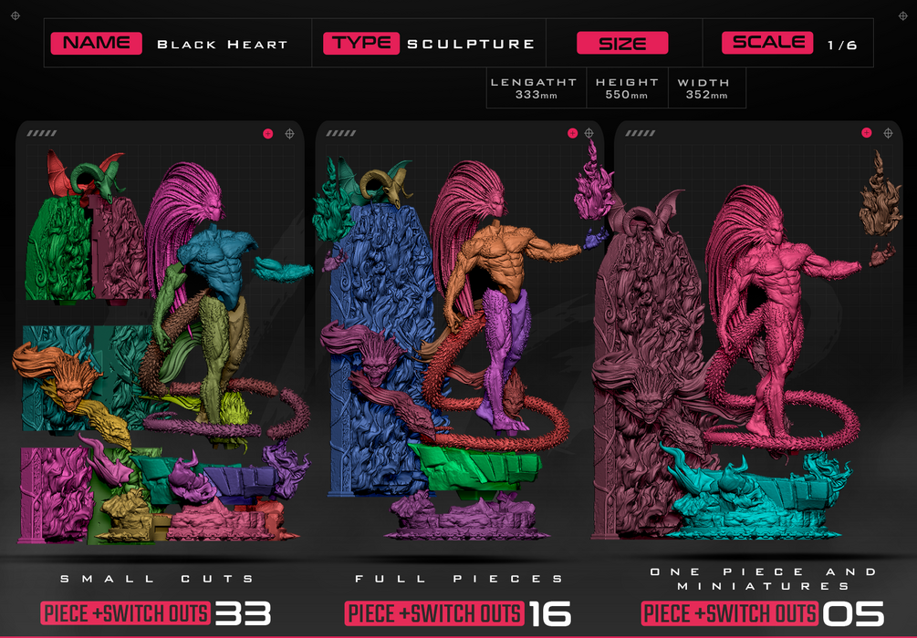 Black Heart Sculpture. Non Supported, Pre Supported and One Piece Files
