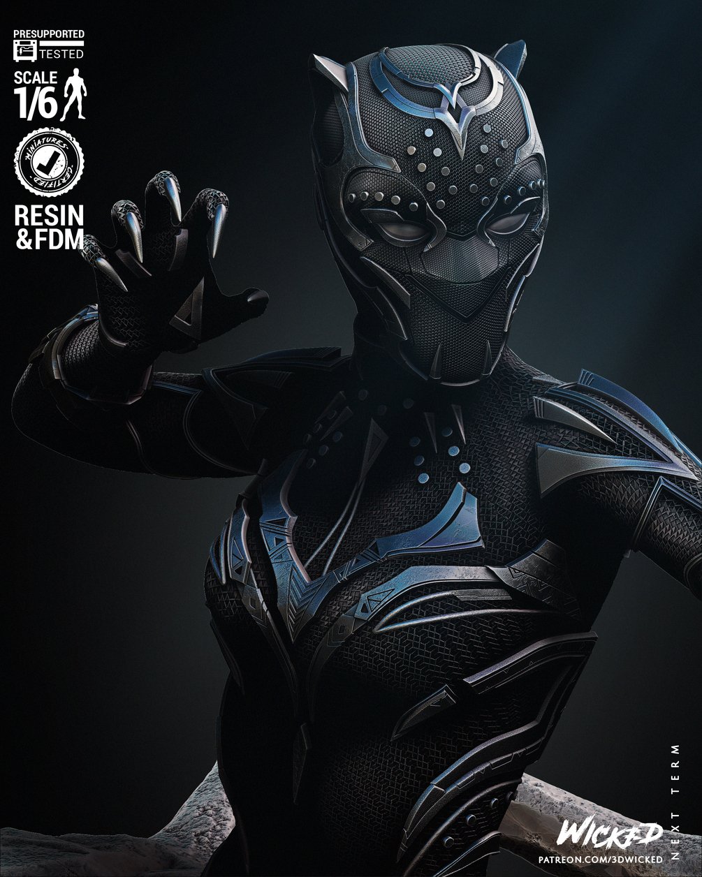 Black Panther 2024 Sculpture. Non Supported, Pre Supported and One Piece Files