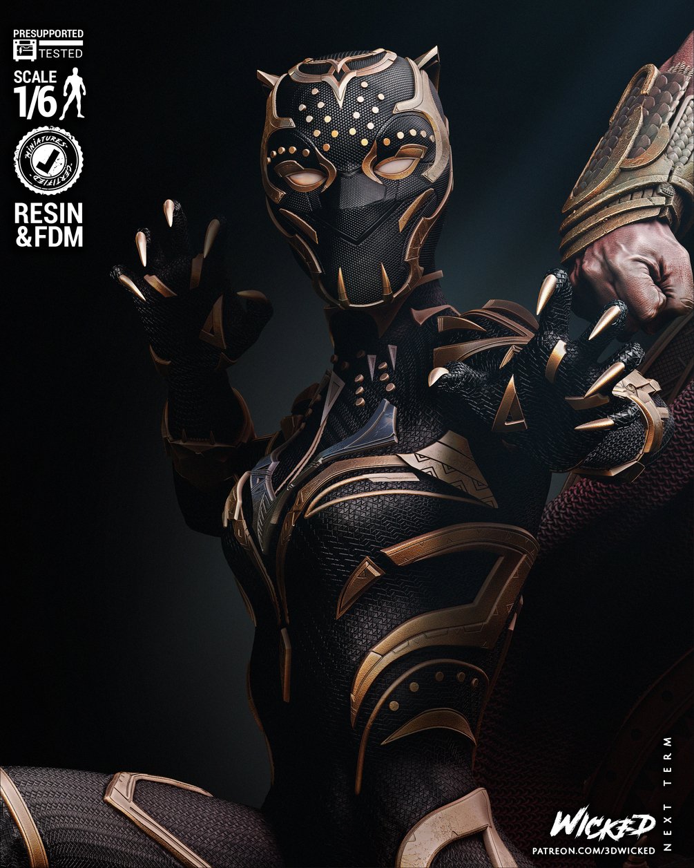 Black Panther and Namor Diorama. Non Supported, Pre Supported and One Piece Files