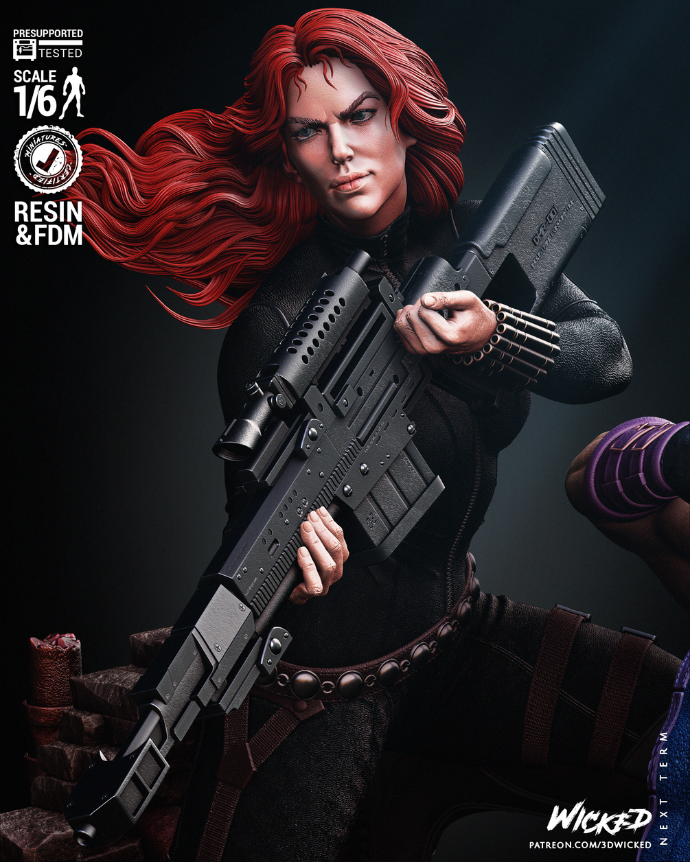 Wicked Marvel Hawkeye and Black Widow Diorama Sculpture: Tested and ready for 3D printing