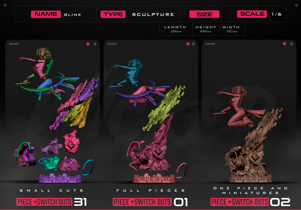 Blink (Joe Madureira) Sculpture. Non Supported, Pre Supported and One Piece Files