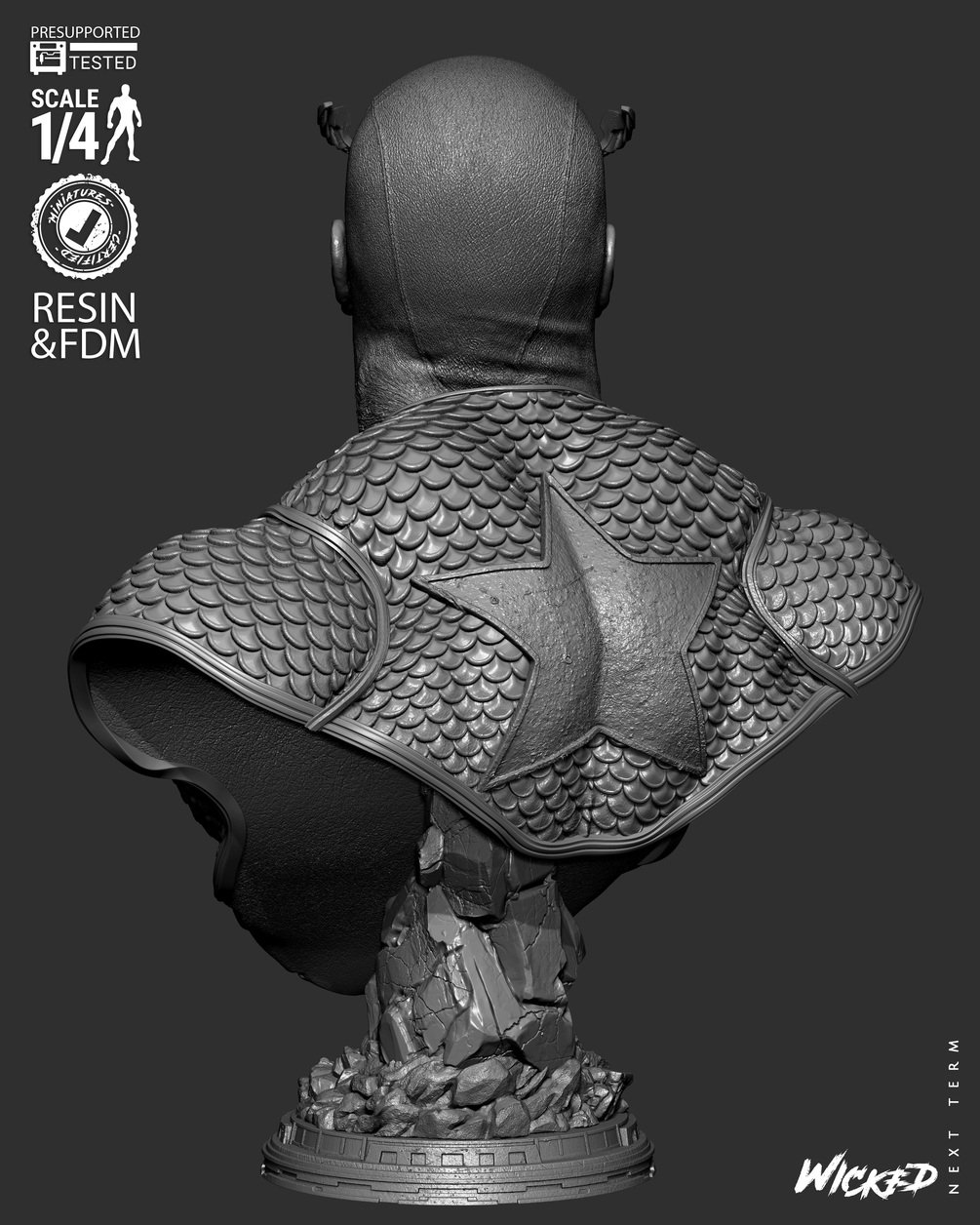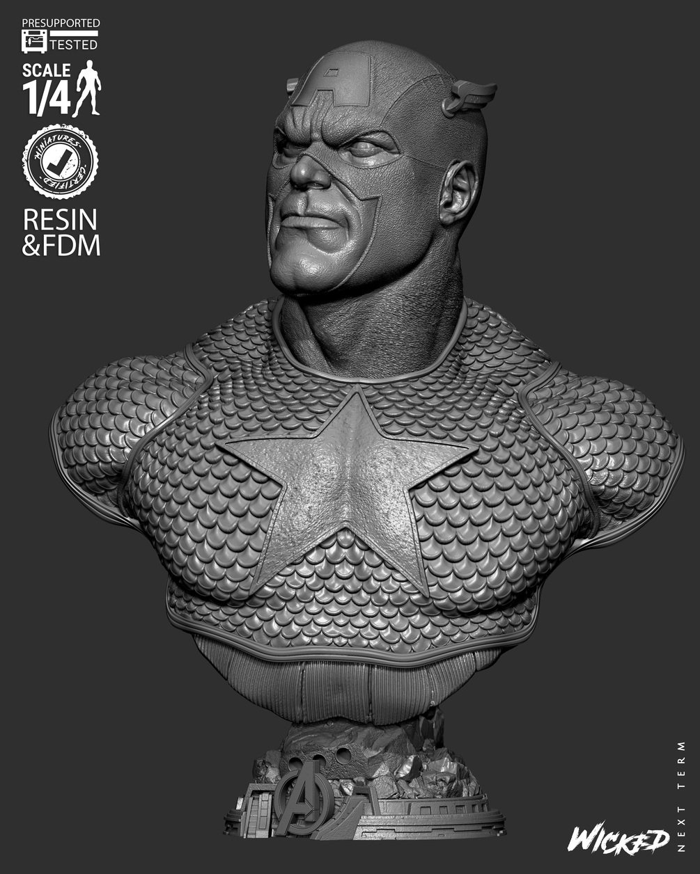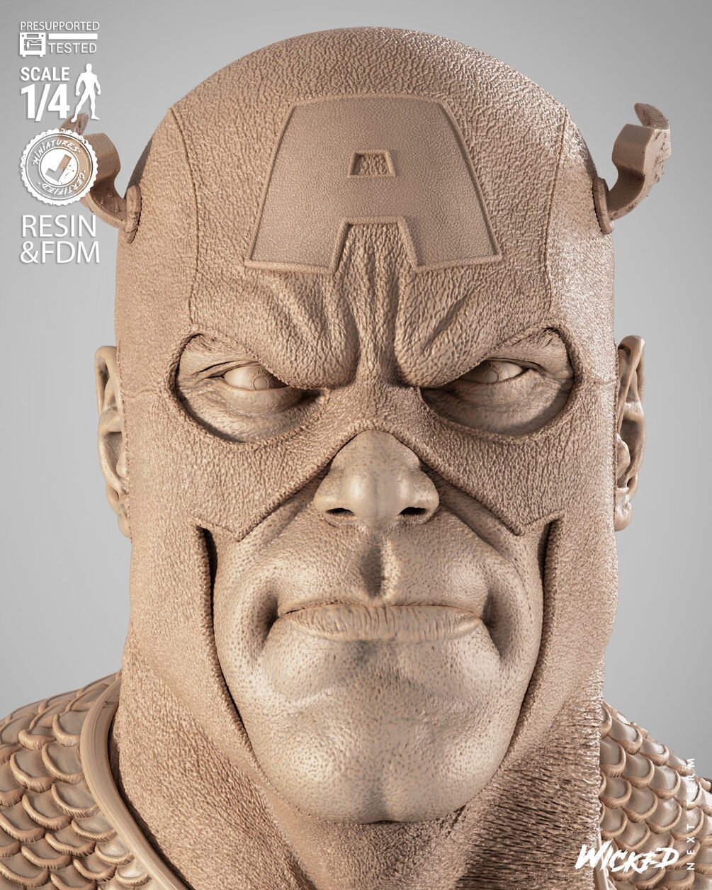 Wicked Marvel August 2025 Term Captain America 2025 Portrait Bust: Tested and ready for 3D printing