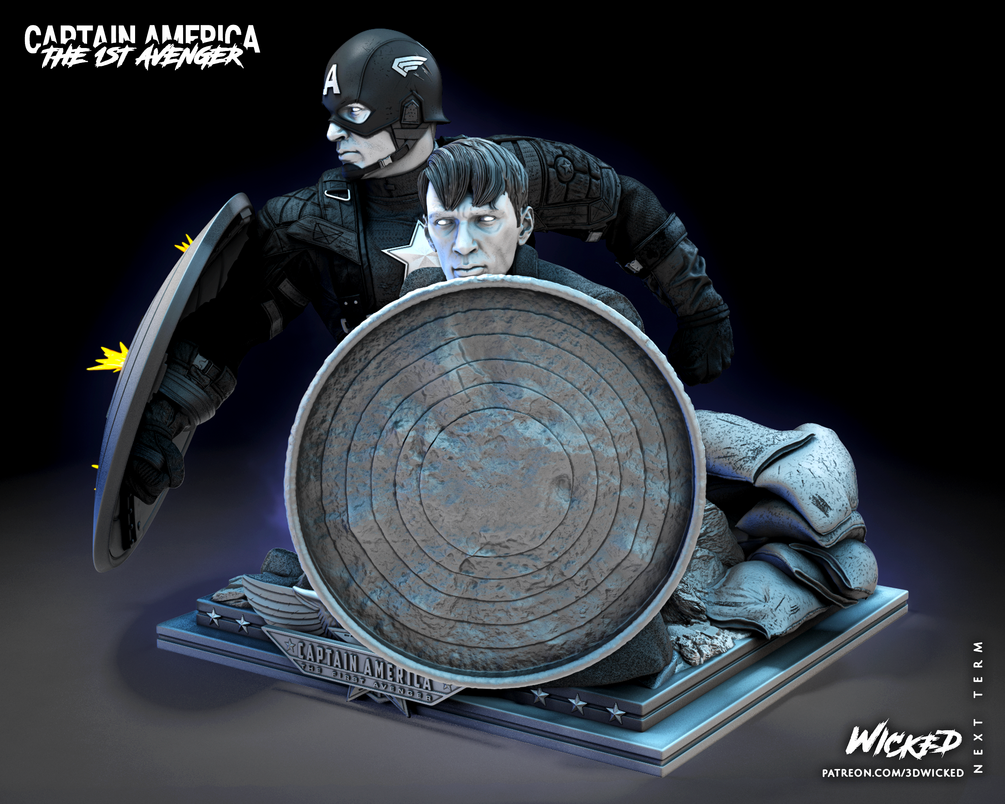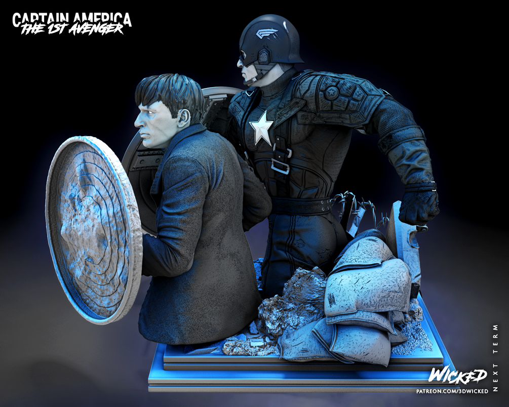 Wicked Marvel Captain America and Steve Rogers Bust DIORAMA COMPLETE: Tested and ready for 3d printing