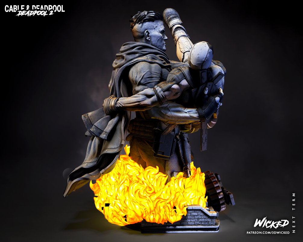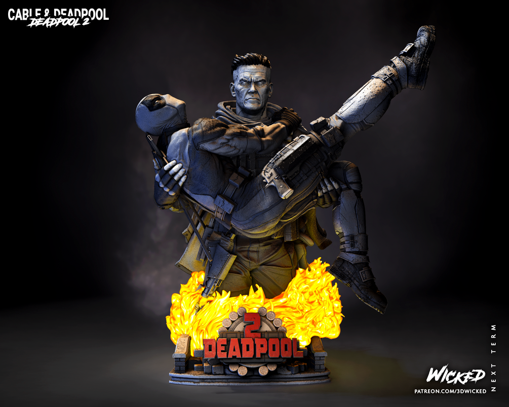 Deadpool and Cable Bust based on the Marvel Comics. Fan Art Model (1/4 scale aprox.) Tested and ready for 3d printing.