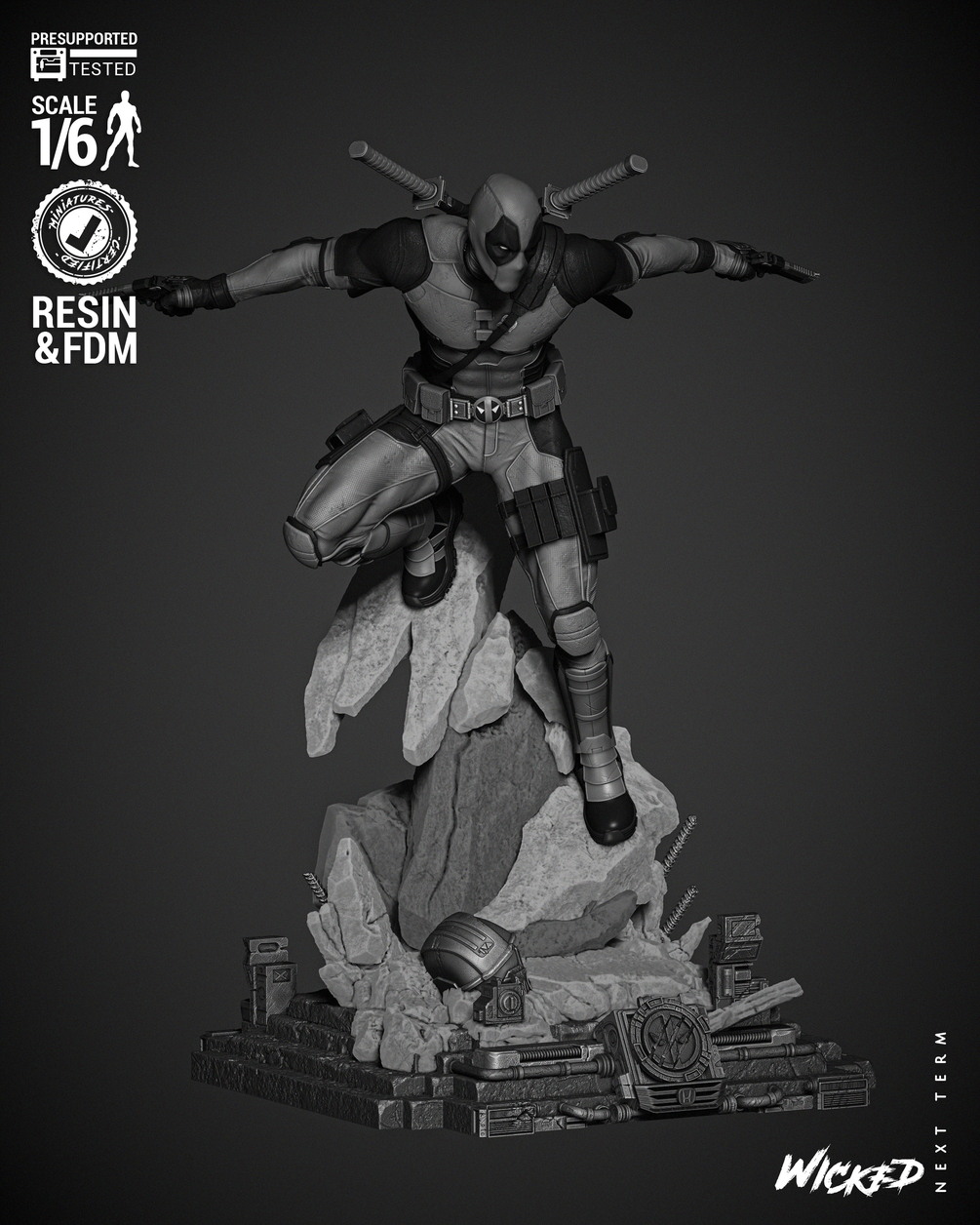 Deadpool 2024 Sculpture. Non Supported, Pre Supported and One Piece Files