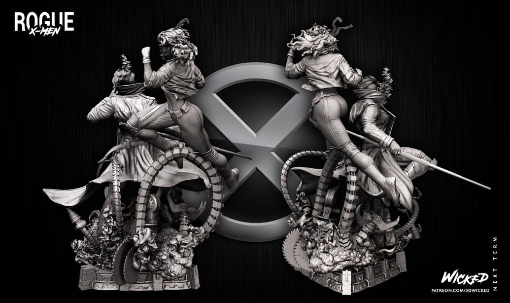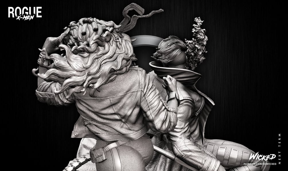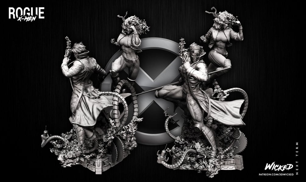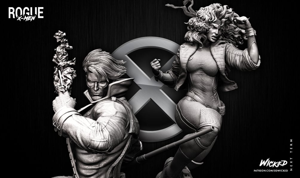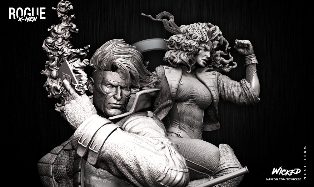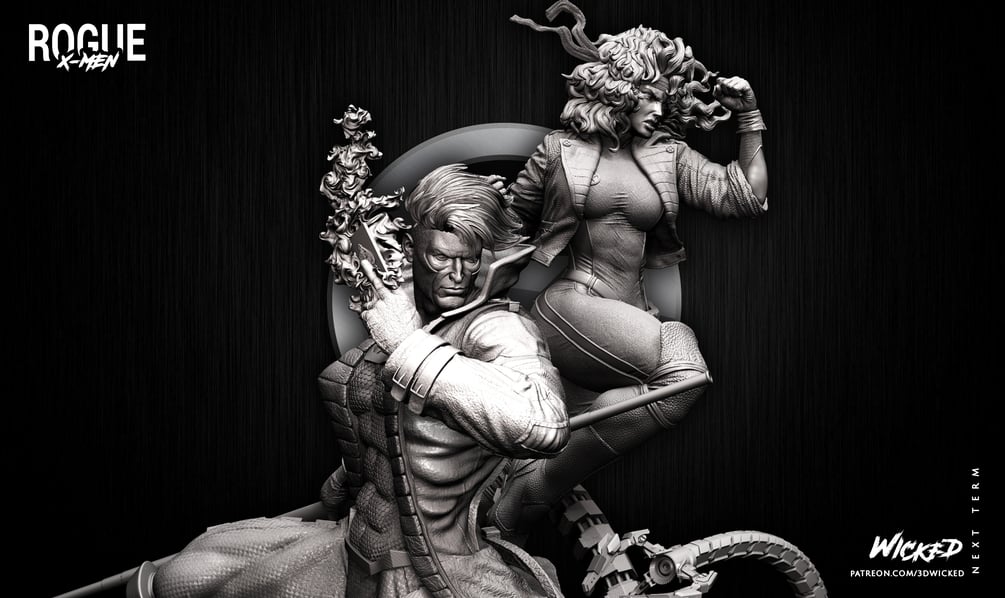 Wicked Marvel DIORAMA BASE + Rogue Sculpture + Gambit Sculpture: Tested and ready for 3d printing