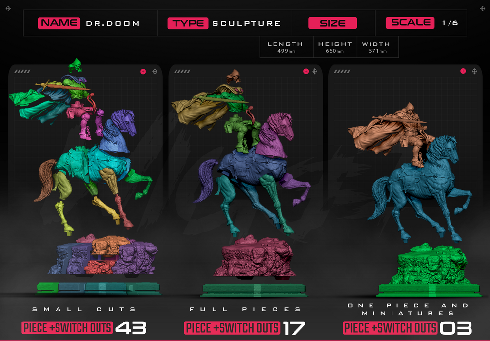 Dr. Doom Horse Sculpture. Non Supported, Pre Supported and One Piece Files
