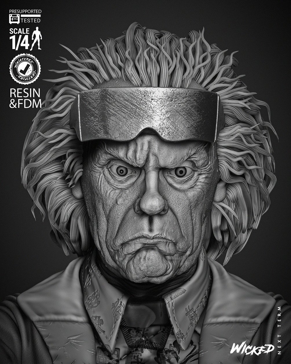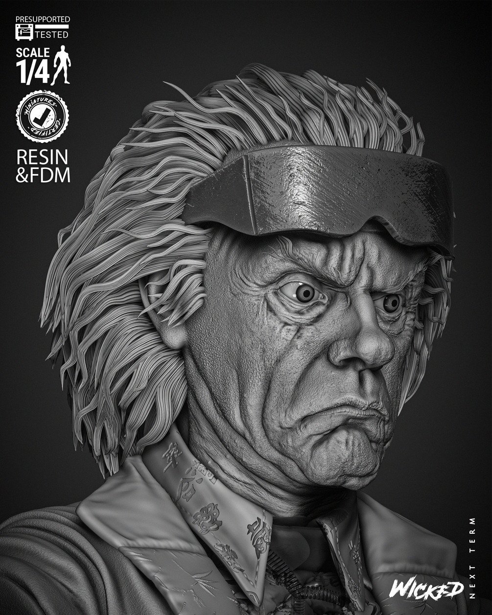 Wicked Movies Dr. Emmett Brown Portrait Bust: Tested and ready for 3D printing