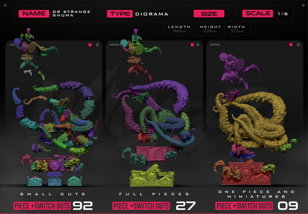Dr Strange and Shuma Gorath Diorama is based on the Marvel Comics Fan Art Model (1/6 scale approx.). It has been tested and is ready for 3D printing.