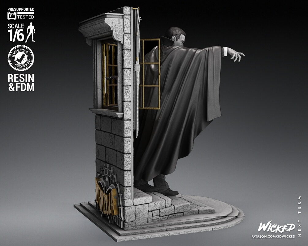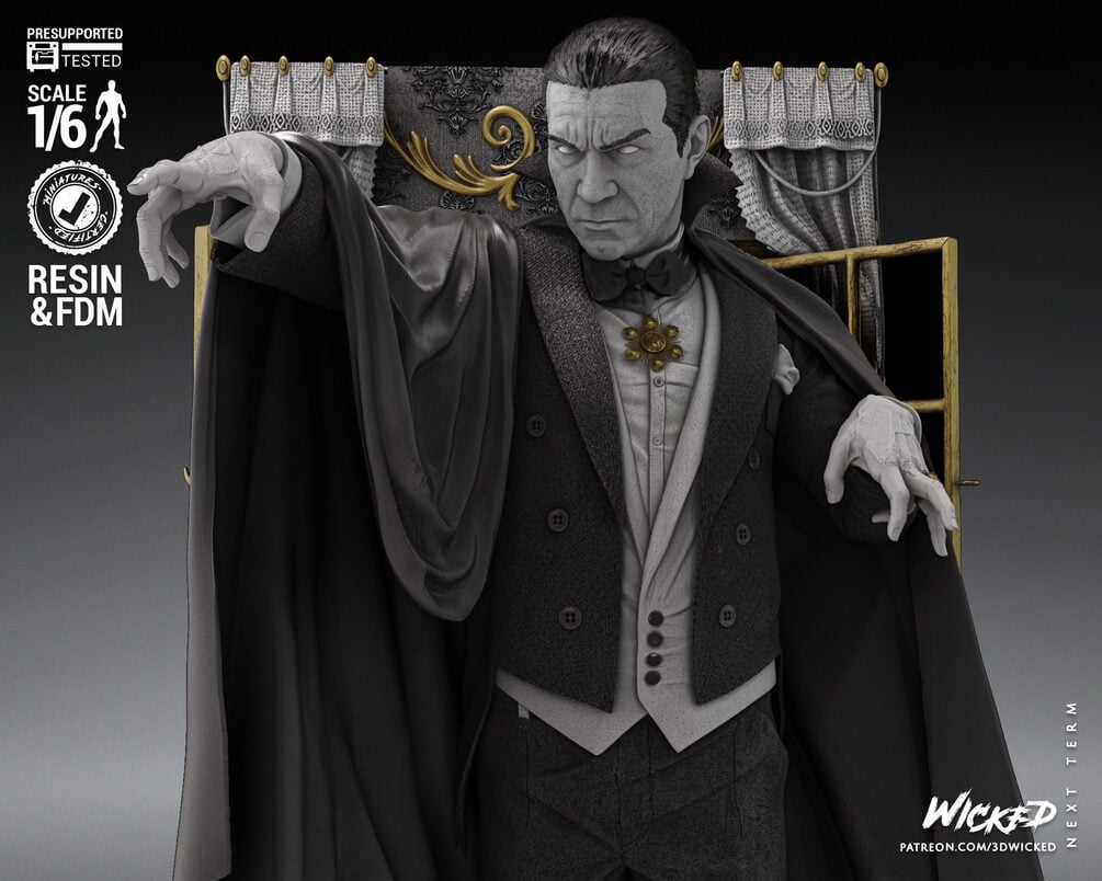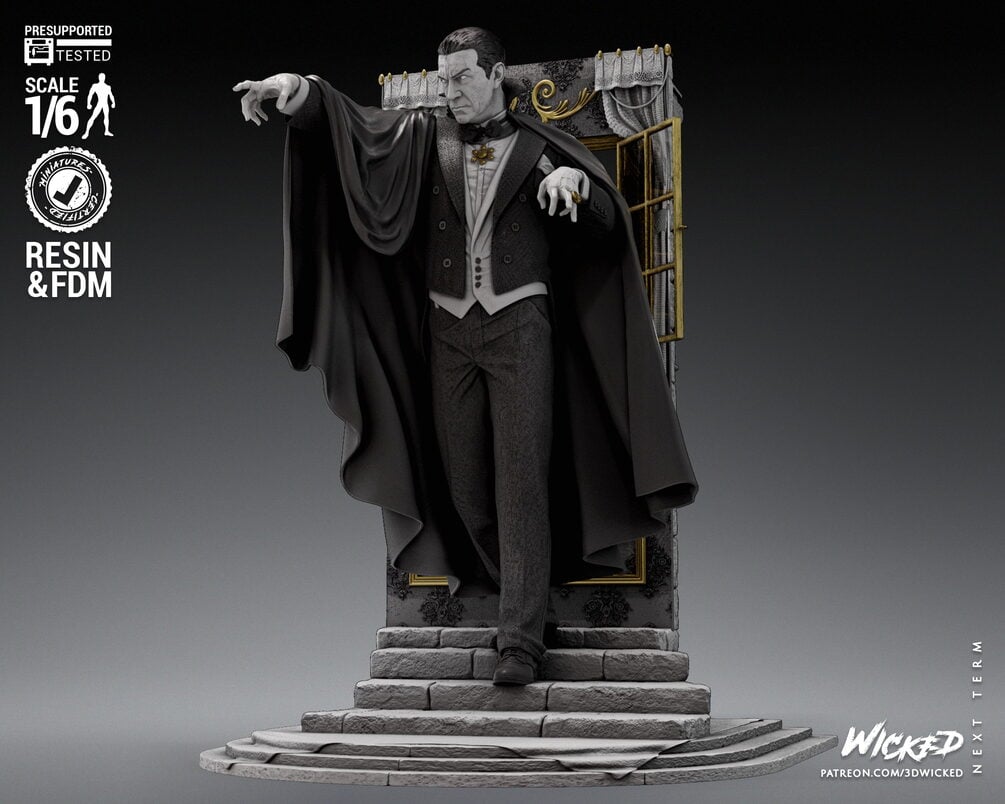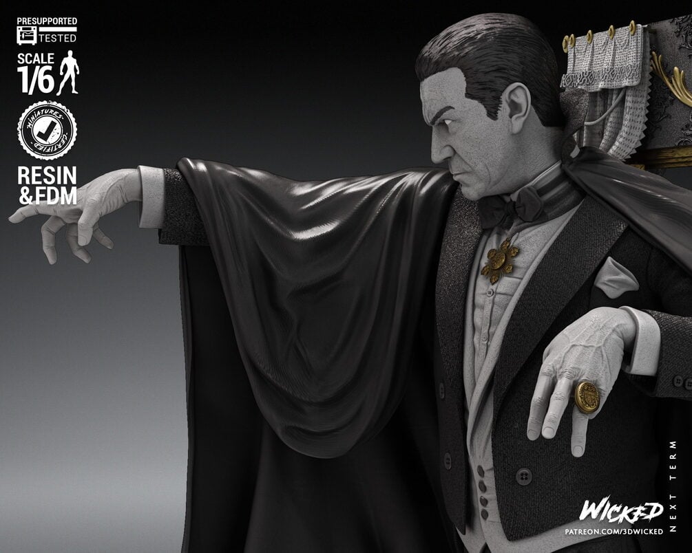 Dracula Sculpture based on the Horror Movies Fan Art Model (1/6 scale approx) Tested and ready for 3D printing.