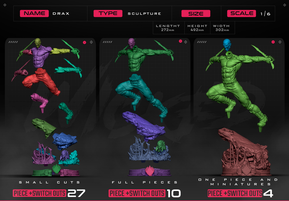 Drax Comic Version Sculpture. Non Supported, Pre Supported and One Piece Files