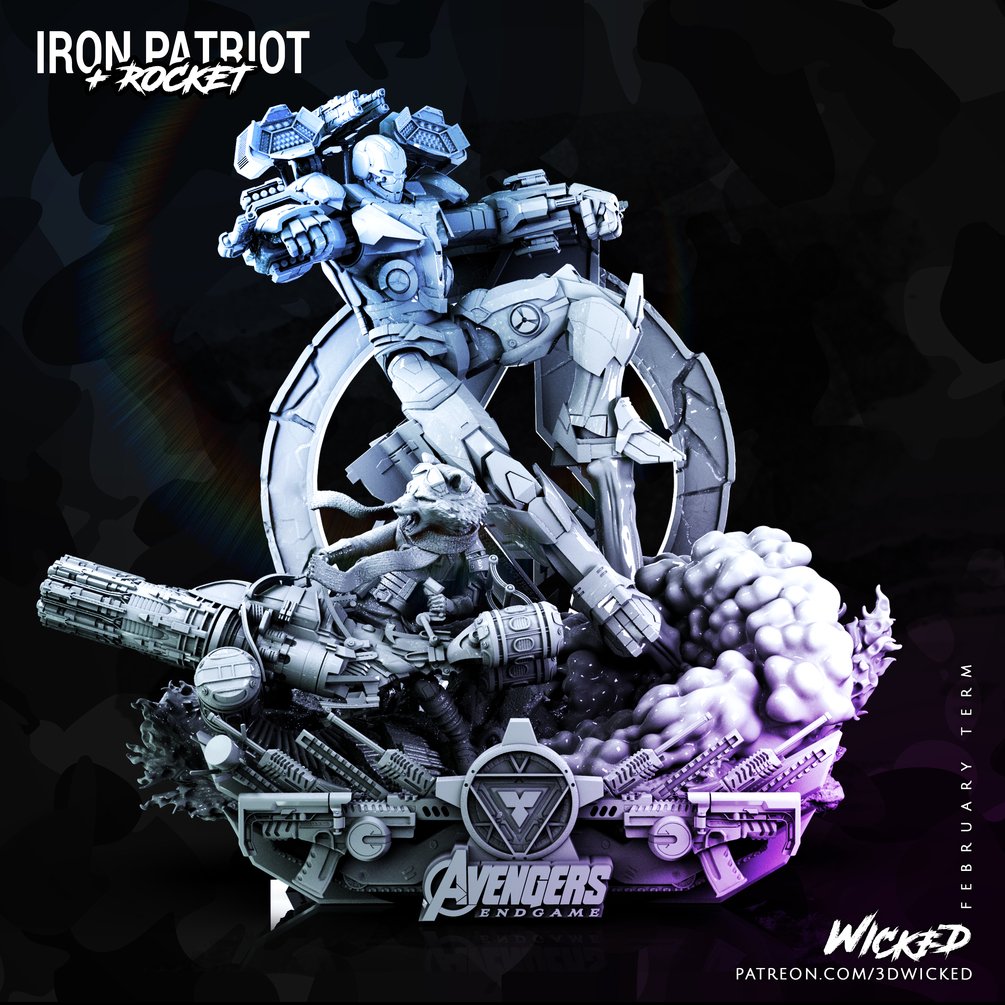 Wicked Marvel Avengers Endgame: Iron Patriot + Rocket Diorama Base STLs ready for printing
