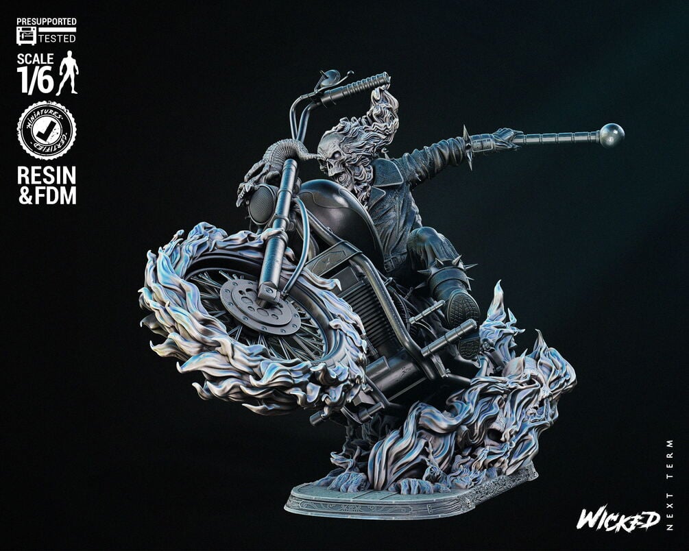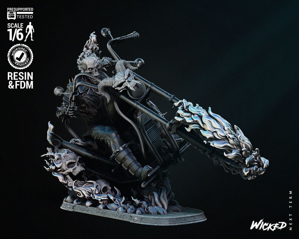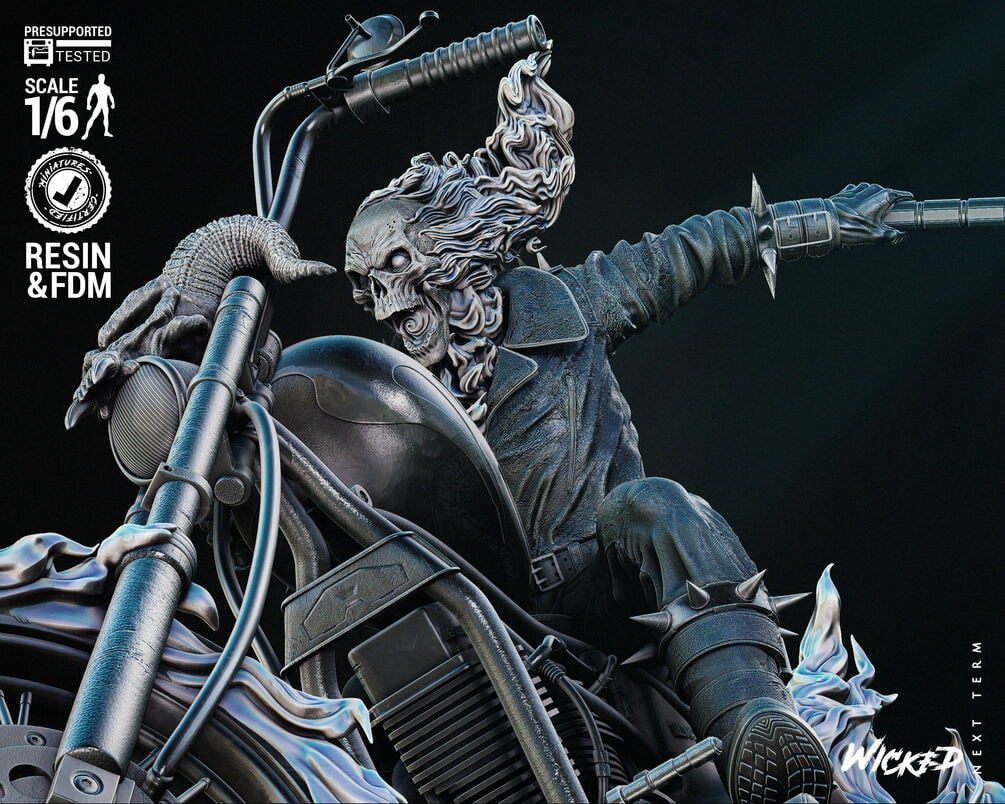 Wicked Marvel Johnny Blaze Ghost Rider Sculpture: Tested and ready for 3D printing
