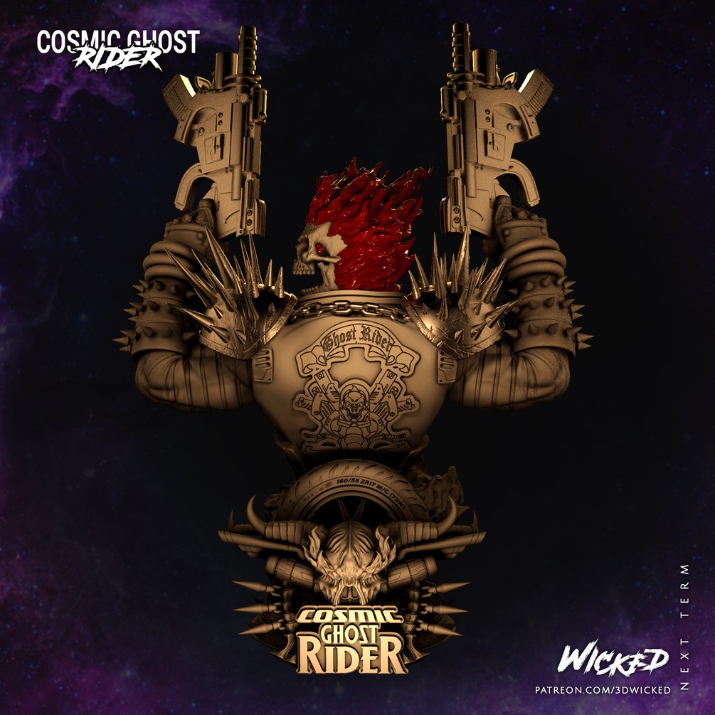 Cosmic Ghost Rider Bust based on the MCU. Fan Art Model (1/4 scale aprox.) Tested and ready for 3d printing.