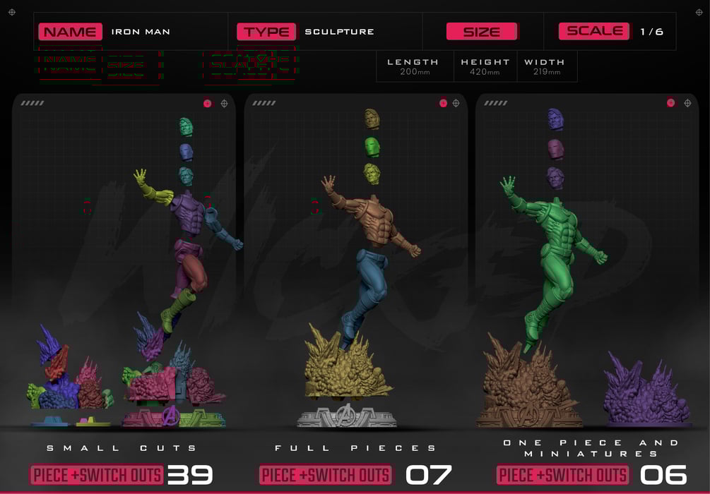 Iron Man 2025 Sculpture Non Supported, Pre Supported and One Piece Files