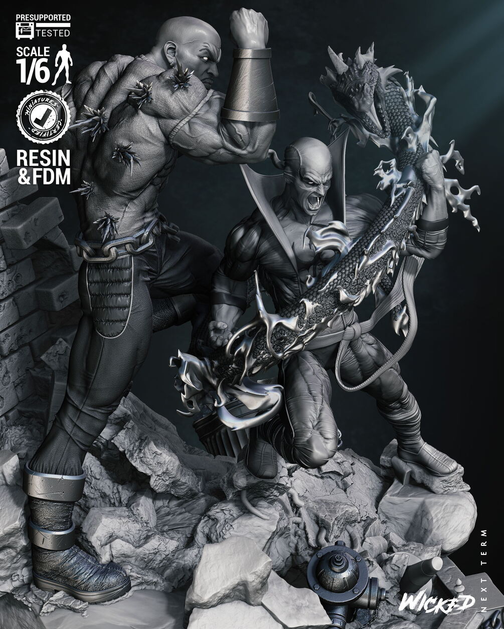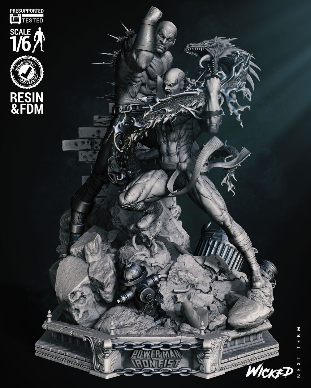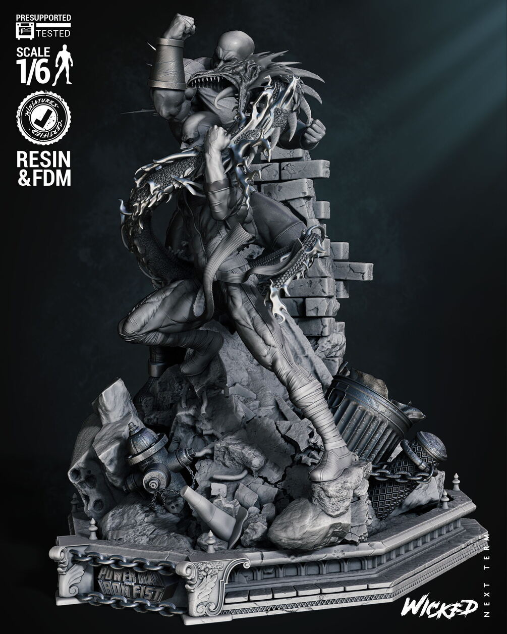 Wicked Marvel Power Man and Iron First Diorama #2 (With Out Car) Sculpture: Tested and ready for 3D printing