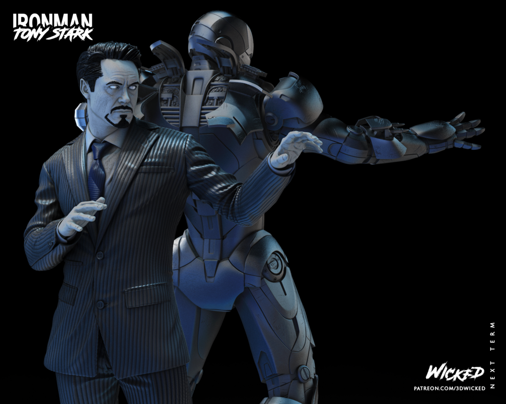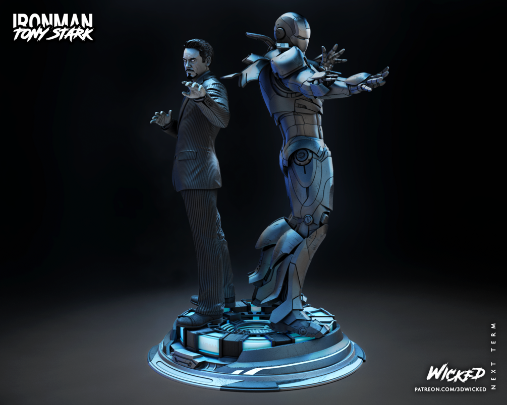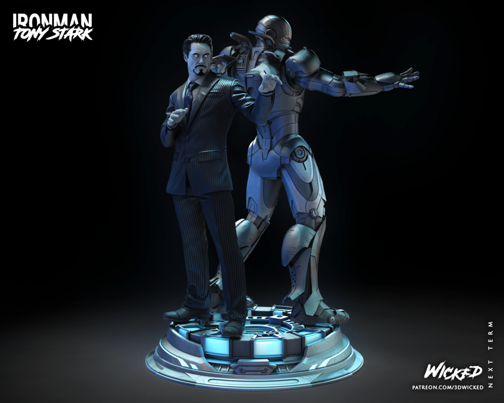Wicked Marvel Iron Man and Tony Stark Sculptures DIORAMA COMPLETE: Tested and ready for 3d printing
