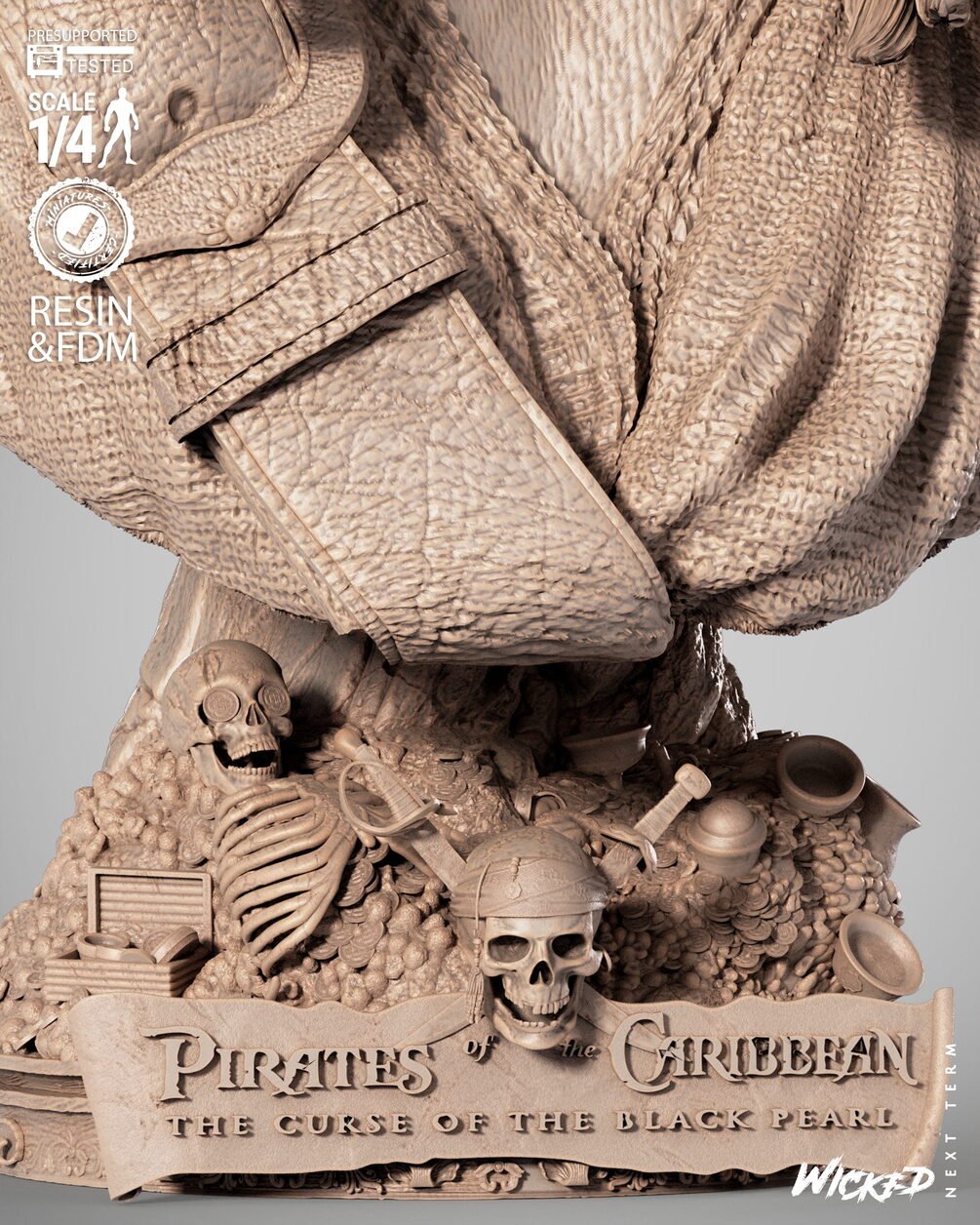 Jack Sparrow Portrait Bust. Non Supported, Pre Supported and One Piece Files