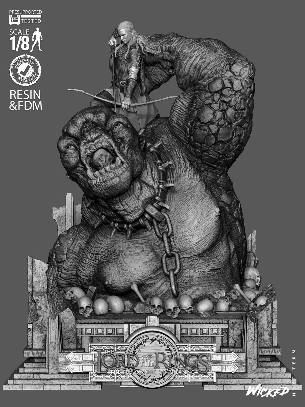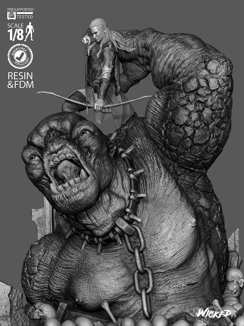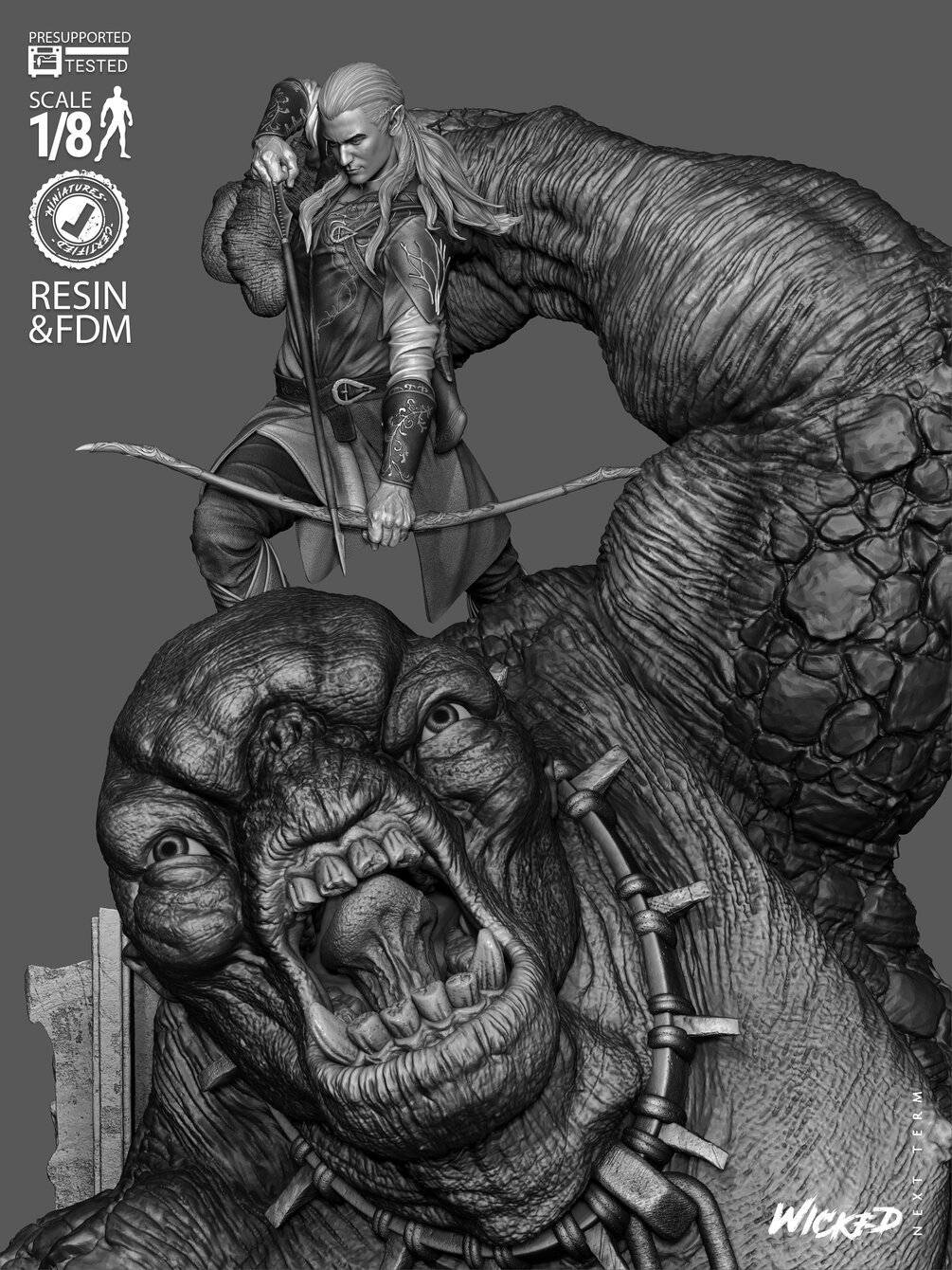 Wicked WILDCARD Movies Legolas Vs Troll Diorama (Lite Version): Tested and ready for 3D printing