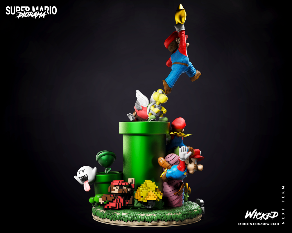 Wicked Video Game Super Mario DIORAMA COMPLETE Sculpture: Tested and ready for 3d printing
