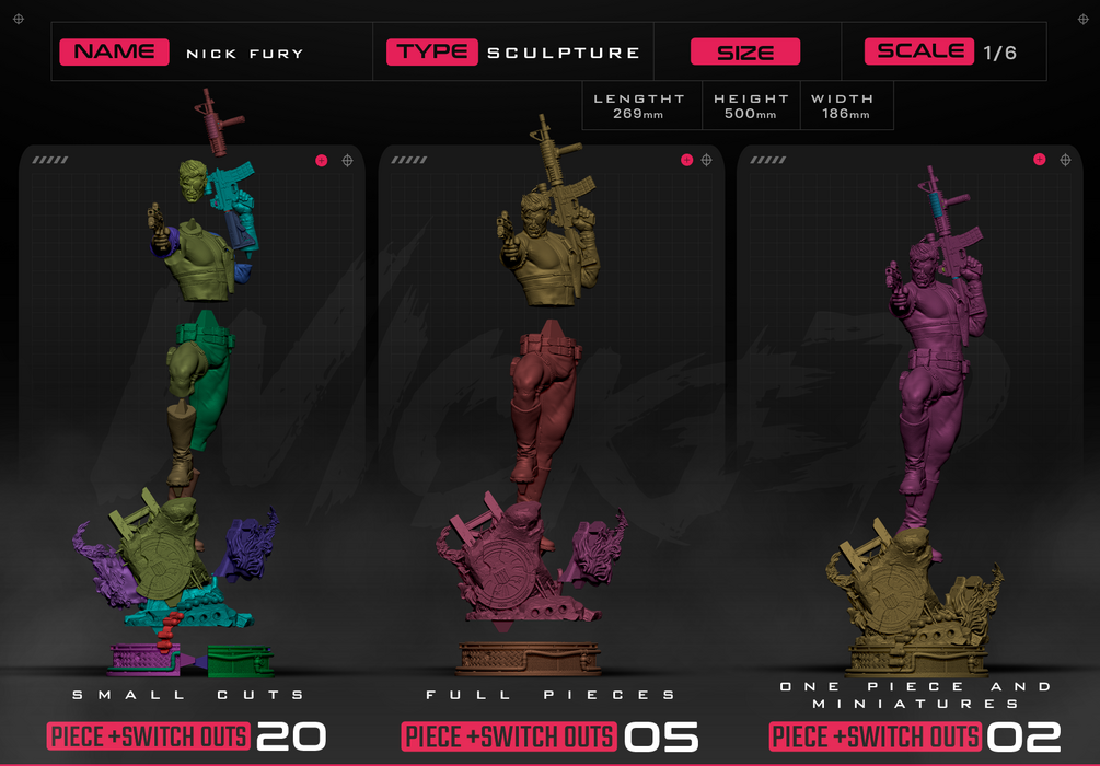 Nick Fury Sculpture. Non Supported, Pre Supported and One Piece Files