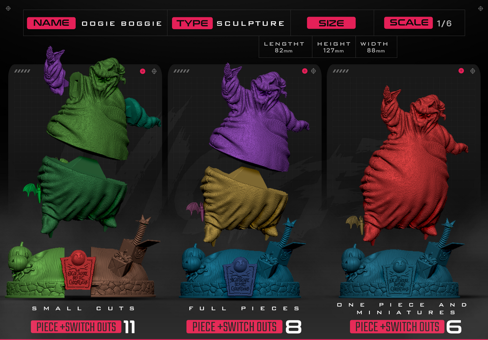 Oogie Boogie Sculpture. Non Supported, Pre Supported and One Piece Files