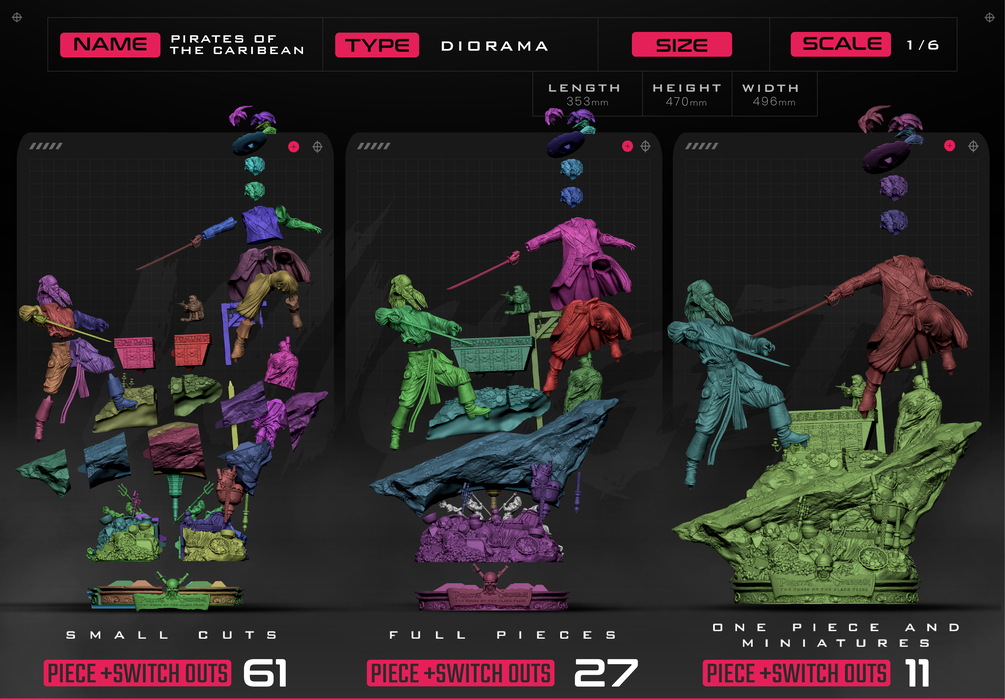 Pirates of the Caribbean Diorama. Non Supported, Pre Supported and One Piece Files