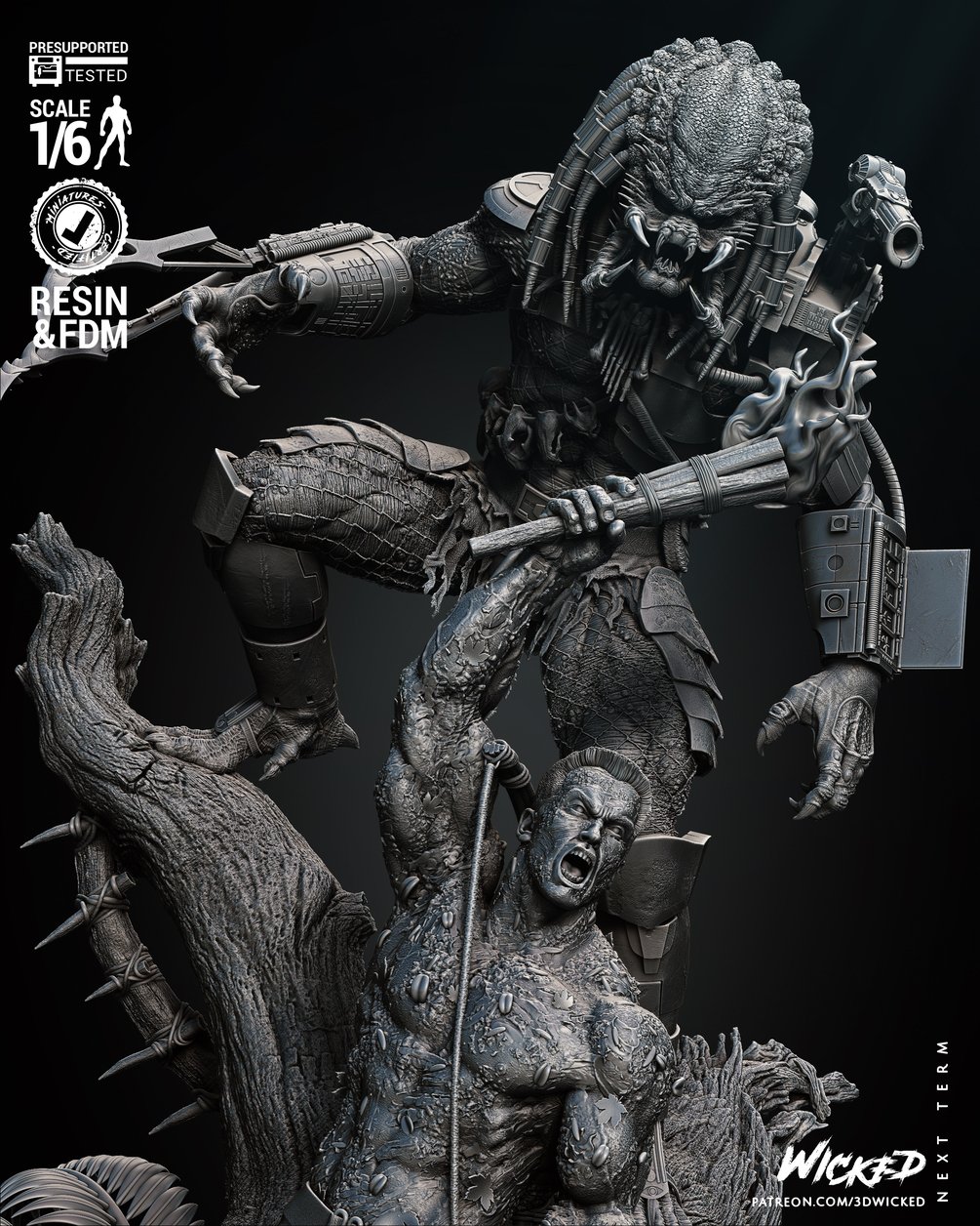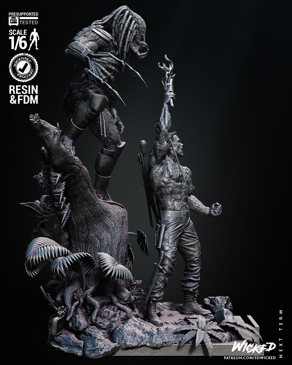 Wicked Movies Predator and Dutch Diorama V2 (Lifting the torch) Sculpture: Tested and ready for 3D printing