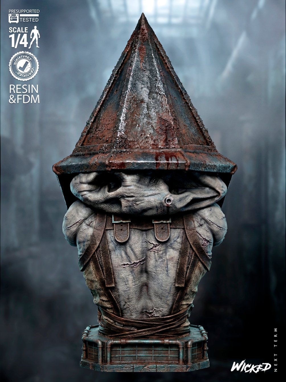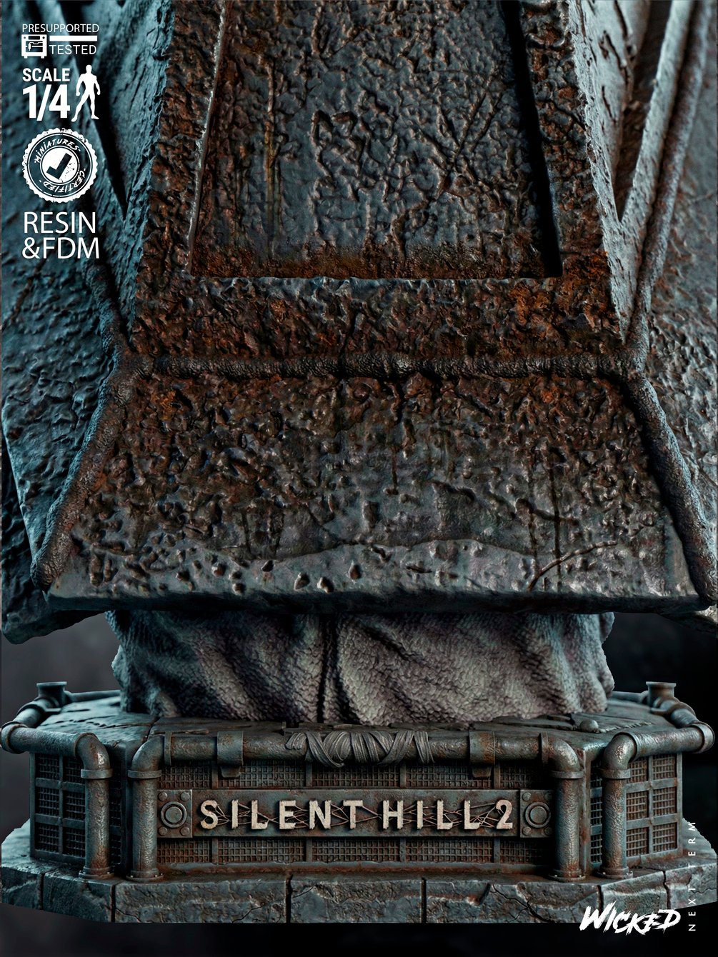 Pyramid Head Portrait Bust (1/4 scale approx.). It has been tested and is ready for 3D printing.