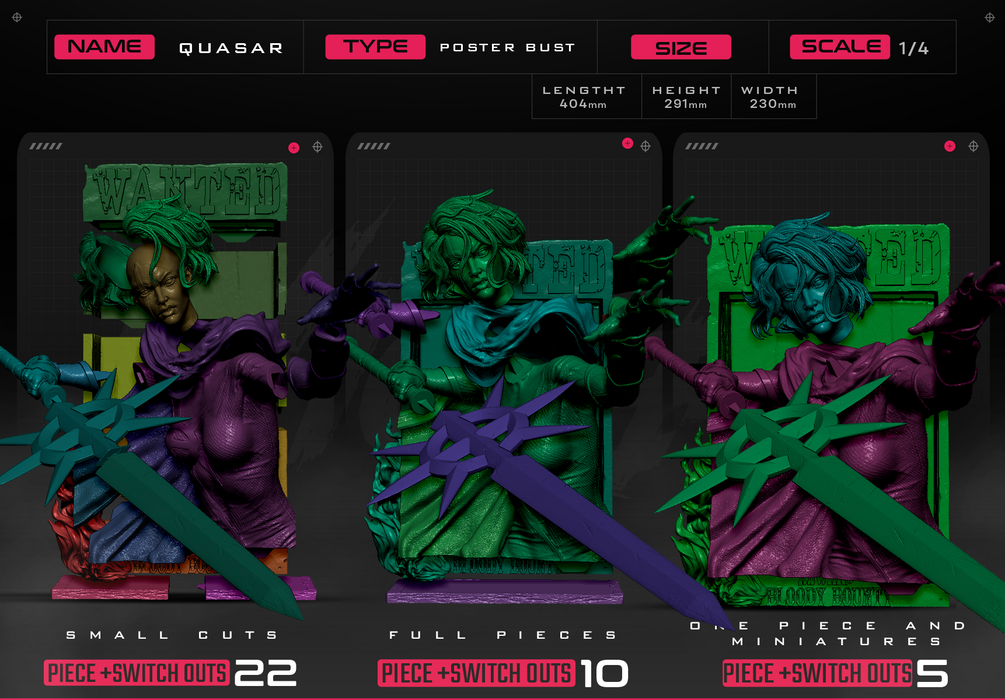 Quasar Bust Poster. Non Supported, Pre Supported and One Piece Files