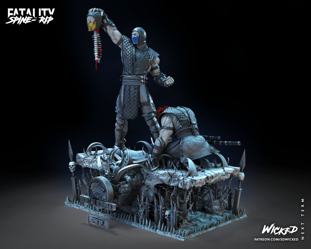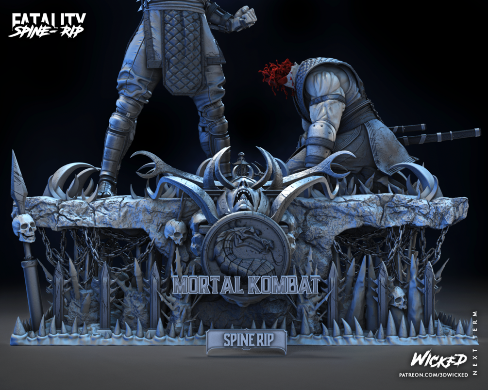 Wicked Video Game Sub Zero Vs Scorpion Diorama SPINE RIP Sculpture: Tested and ready for 3d printing