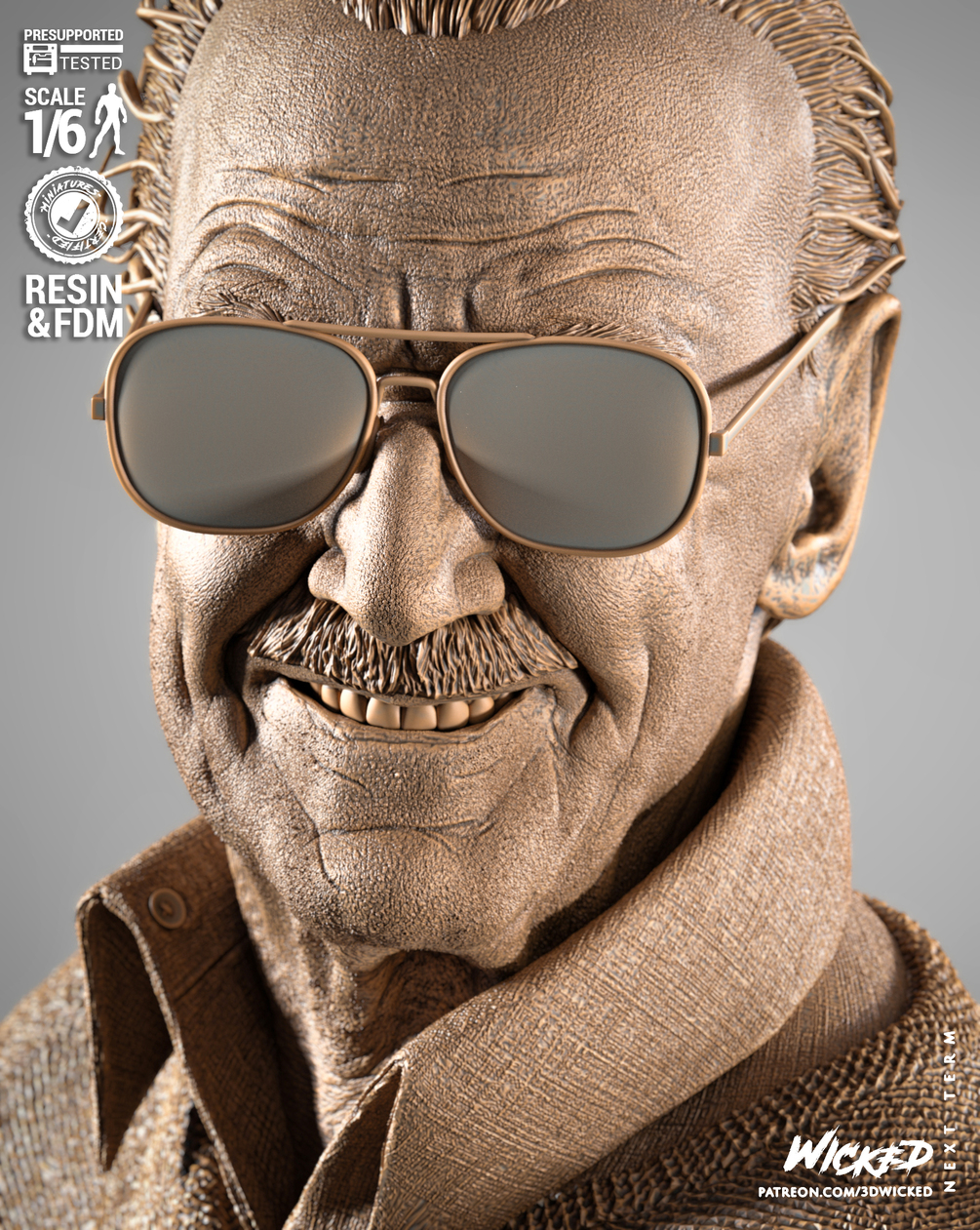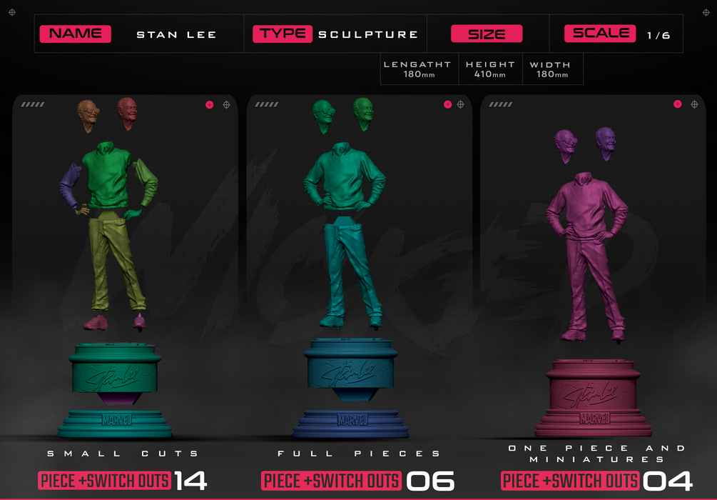 Stan Lee Sculpture. Non Supported, Pre Supported and One Piece Files