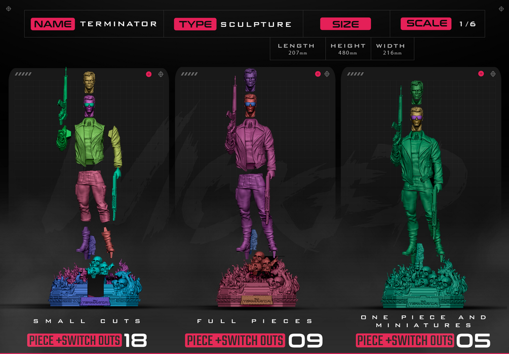 Terminator 1 Sculpture. Non Supported, Pre Supported and One Piece Files