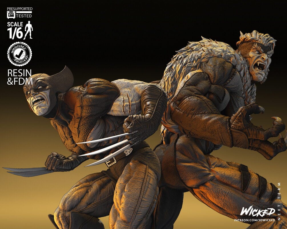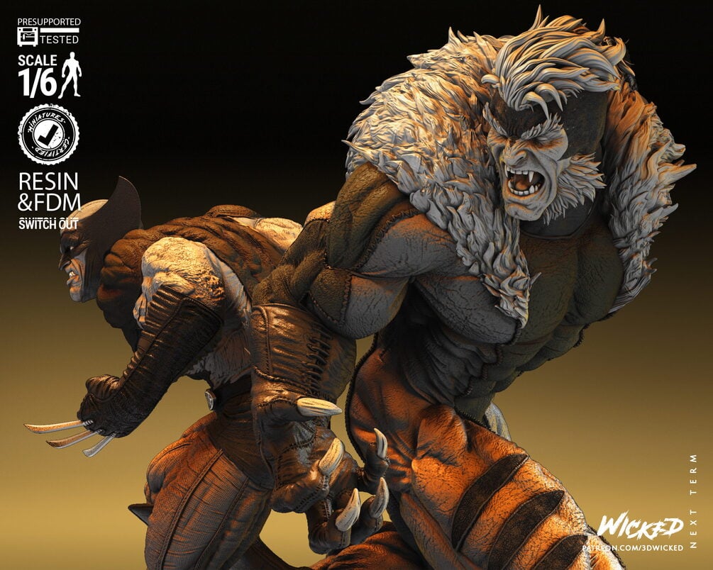 Wolverine and Sabretooth Second Version Sculpture. Non Supported, Pre Supported and One Piece Files