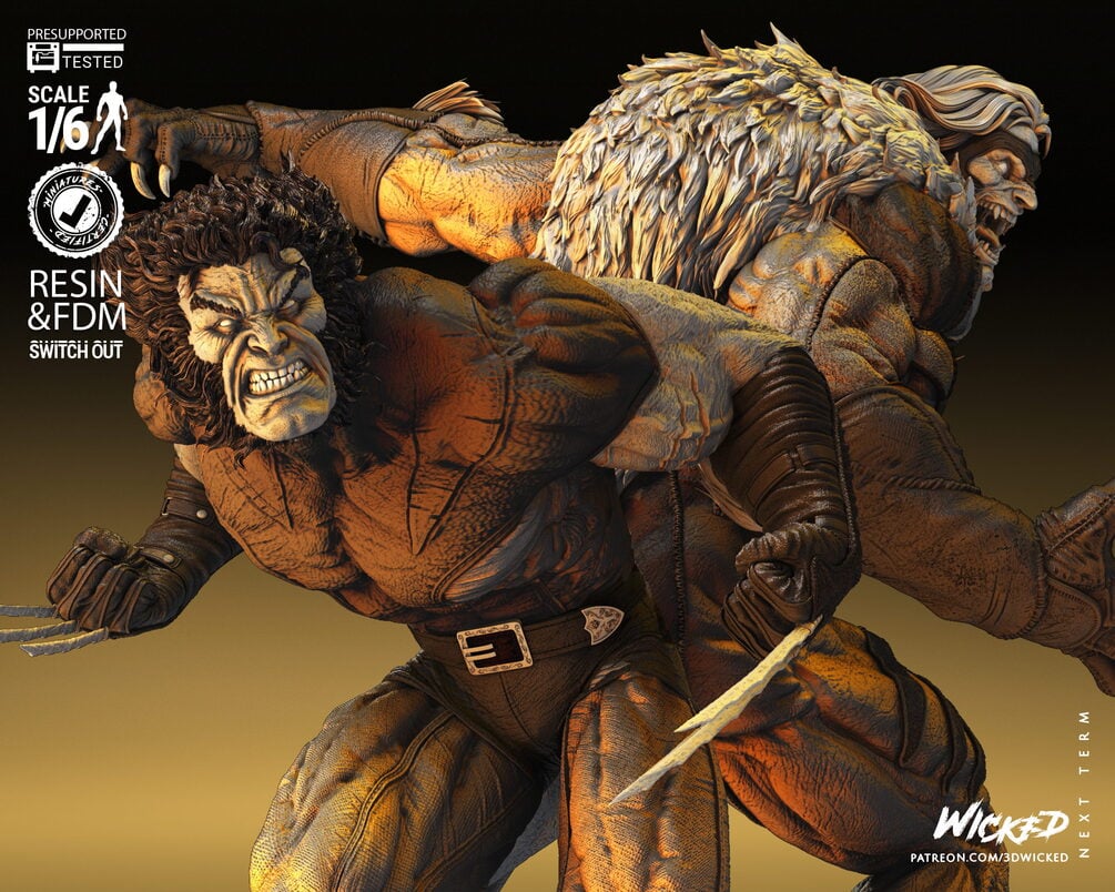 Wolverine and Sabretooth Second Version Diorama based on the Marvel Comics Fan Art Model (1/6 scale approx) Tested and ready for 3D printing.